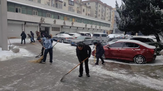 大家手持铁锹、扫帚等工具,迅速投入到清扫工作中。院领导率先垂范,与干部职工并肩作战,挥锹铲雪。党员干部冲锋在前,不畏严寒,分工协作,铲的铲、推的推、扫的扫。尽管寒风刺骨,但许多人额头上都渗出了汗珠。经过一个多小时的连续奋战,院大门口、办公楼前主干道、人行通道等区域的积雪被彻底清理干净,大院环境恢复了往日的整洁有序,极大地方便了人员和车辆的通行。